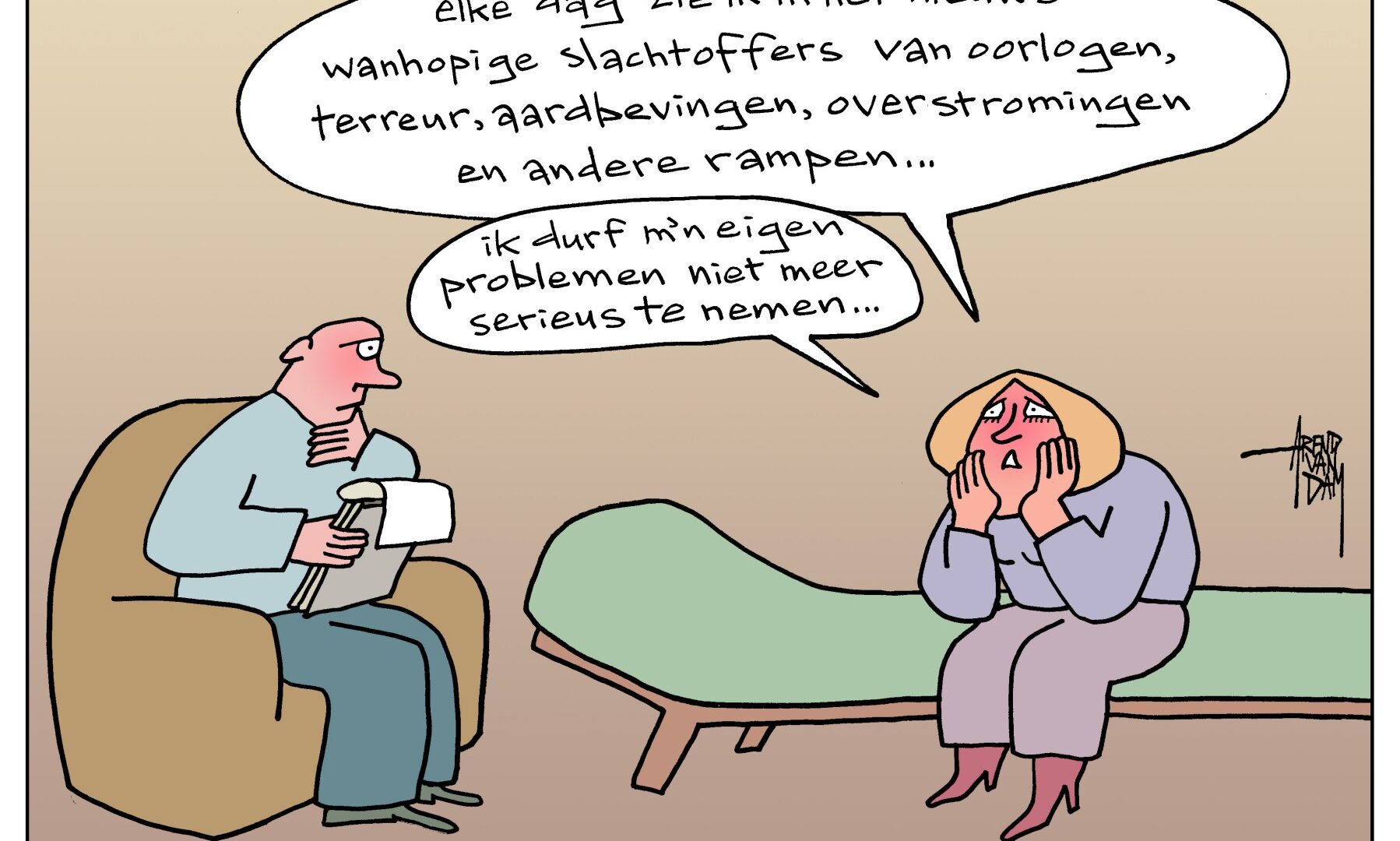 Arend van Dam is cartoonist en maakt “politieke tekeningen” over onderwerpen als: nationale en wereld-politiek, economie, milieu, mensenrechten, samenleving, enz.