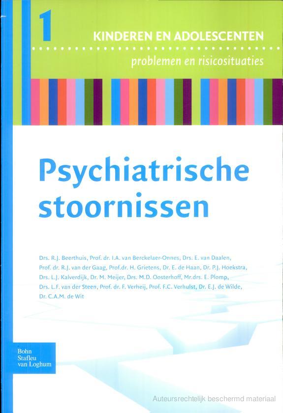 In de reeks ‘Kinderen en adolescenten, Problemen en risicosituaties’ worden in totaal tien boeken uitgebracht met uiteenlopende thema’s, zoals psychosociale problemen, somatische problemen, het gezin, geboorte en dood. In dit eerste deel worden in dertien hoofdstukken twaalf veel voorkomende psychiatrische stoornissen bij kinderen en jeugdigen beschreven. In de inleiding door F. Verhey wordt de complexiteit van psychiatrische stoornissen onder de aandacht gebracht: kinderpsychiatrische stoornissen zijn altijd samengestelde, multidimensionale problemen. Er is altijd sprake van problemen in cognitief, emotioneel en sociaal functioneren. Verhey vermeldt dat ongeveer 7% van alle kinderen psychiatrische problemen hebben maar dat slechts 2,5 % in de ggz behandeld wordt. Al jarenlang krijgt de grootste groep van kinderen met psychiatrische problemen niet die hulp die ze nodig hebben. De vraag is of de ggz alleen de ernstigste problematiek ziet of alleen die kinderen die het moeilijkst zijn voor hun omgeving.